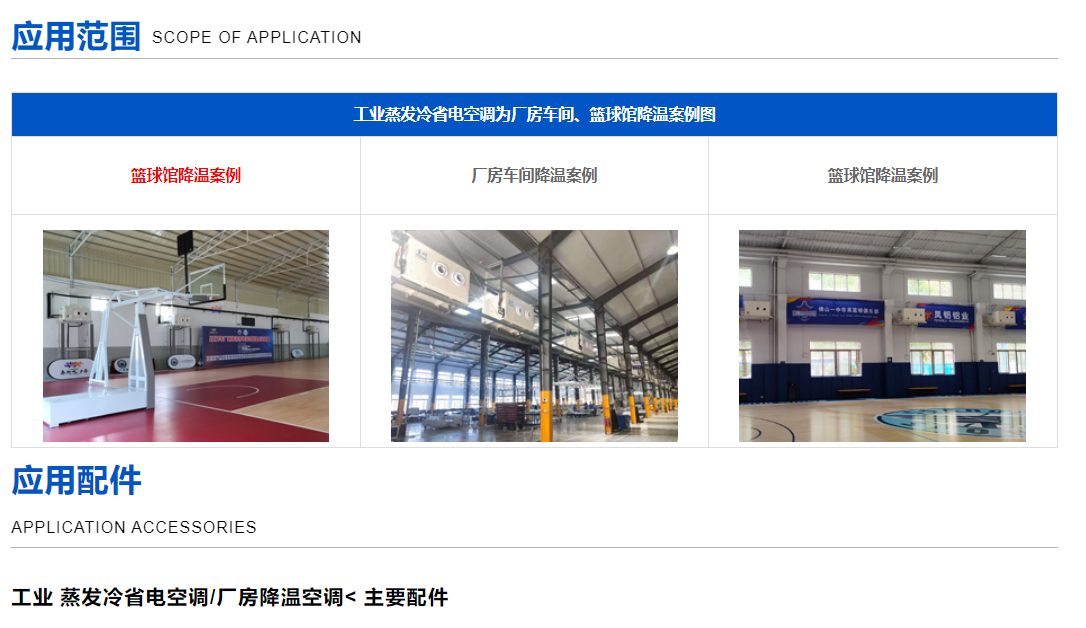 適用場所:廠房車間、學(xué)校飯?zhí)檬程谩?/span>產(chǎn)品展廳、餐廳等工業(yè)商業(yè)場所 制冷降溫