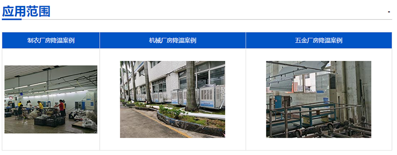 適用場所:廠房車間、產(chǎn)品展廳、學(xué)校食堂飯?zhí)、餐廳、展會等工業(yè)商業(yè)場所 制冷降溫
